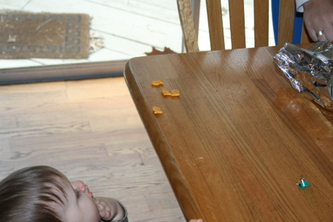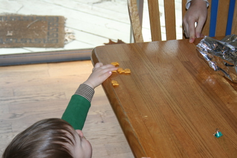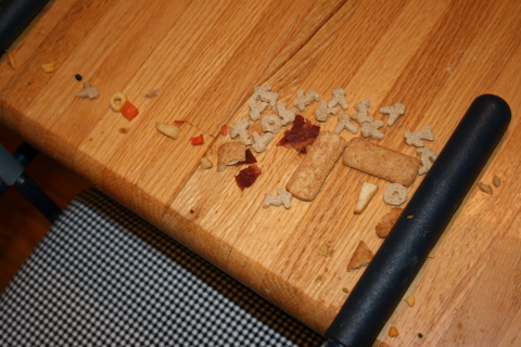 Aftermath of a day’s worth of food skirmishes (found underneath the tray when it was removed to be cleaned):