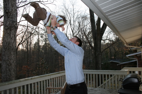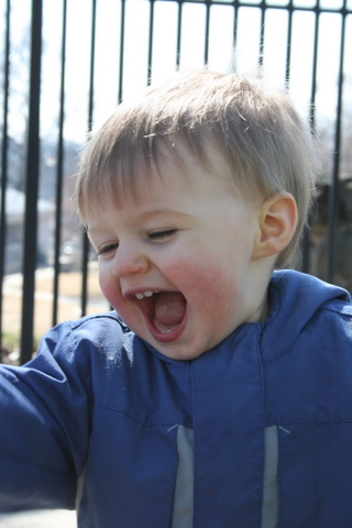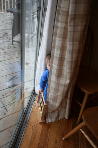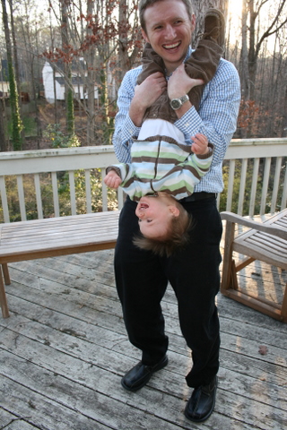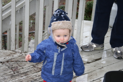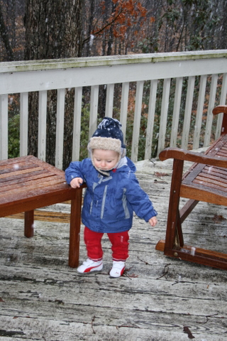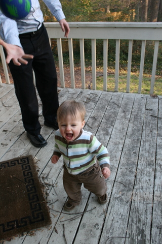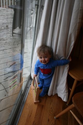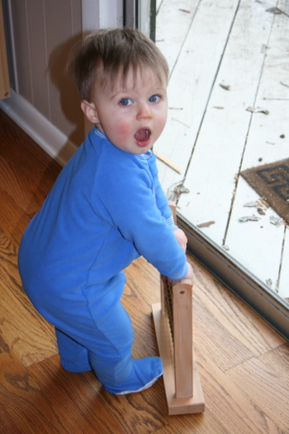 We just had a new banister with newel post installed on our stairs leading to the basement. Not only does it look great, but Liam is now far less likely to break his neck falling off the side! (Not to mention some of our more “mature” relatives…) Of course, Liam is still not allowed on the stairs.