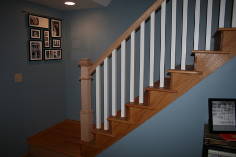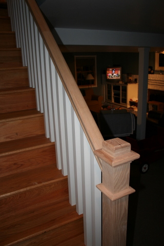 We just had a new banister with newel post installed on our stairs leading to the basement. Not only does it look great, but Liam is now far less likely to break his neck falling off the side! (Not to mention some of our more “mature” relatives…) Of course, Liam is still not allowed on the stairs.