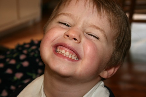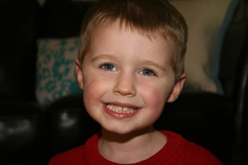 Sleepy, happy boy.