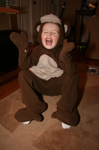 This was the day Liam’s monkey costume came in the mail.  He rushed immediately to try it on and gave me this pose which made me feel much better about ordering his costume rather than making it…