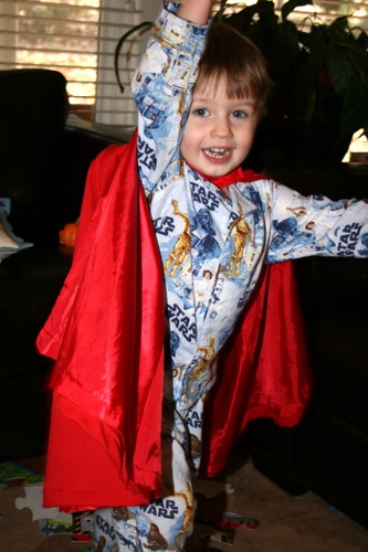 Liam refused to check out his stocking until he was fully outfitted as Bob The Builder: