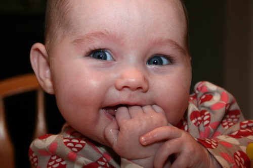 Checking his own teeth: