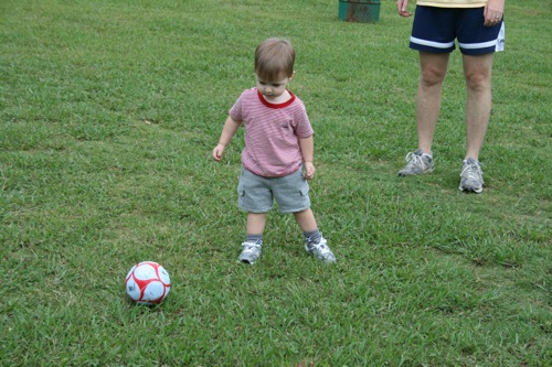 5:30pm: Matt suggests that we start putting things together for the meal and Shannon thinks that this is a great idea (and that maybe Liam will get to eat some with us if we finish quickly enough). Matt pulls all the meat off the rotisserie chicken we used (somehow I doubt Paula Deen would have batted an eye at the fact that I didn’t actually buy and roast an entire chicken, but who knows) while I pull together the ingredients for the crust (which I felt shamed into making because of the number of times I’ve caught it from Lynne over the fact that I’ve never made a pie crust). I start going through drawers looking for my pastry blender only to find I don’t have one (apparently what I was picturing was my mother’s- oops). We decide that we’ll just make a quick trip to the Publix to pick up “real” cream of celery soup (apparently I committed a faux pas by purchasing the 98% fat free version) a pastry blender and a pastry cutter (which according to Matt is what makes the edges look pretty–but I’ve never seen one before so I just trust him and off we go).