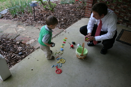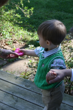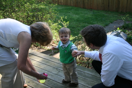 Three Easter baskets, three Easter egg “hunts,” one Easter dinner, one (slightly traumatic) trip to the church nursery. Whew. Here are a few thousand of the pictures we snapped throughout the day: