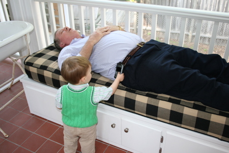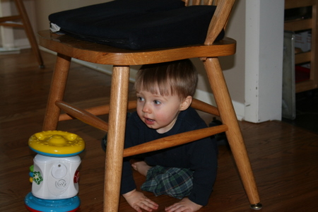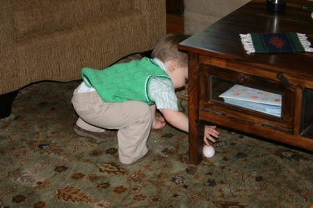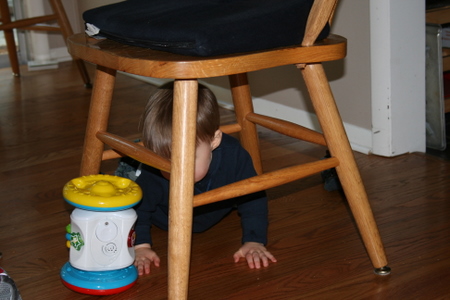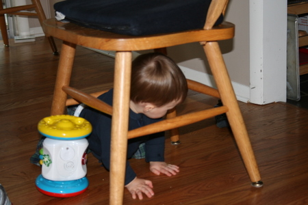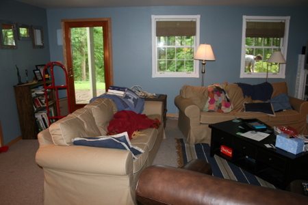Last night Matt finally saw Frederick (which is what he named the skink after he saw him and simultaneously stopped making fun of me and started planning tactical manuevers for Skink Hunt 2009). There were a couple of sightings last night (which is odd because we’ve never seen him at night before — my theory is that Fred heard Matt’s statements of disbelief and came out during his beauty-sleep period to show himself — my secondary theory is that this lack of essential skink sleep caused the events of today, Fred was simply not on his game) but we finally gave up and went to bed. The real action began today during Liam’s nap. By the time I came downstairs (about an hour after Matt) the living room looked like this: