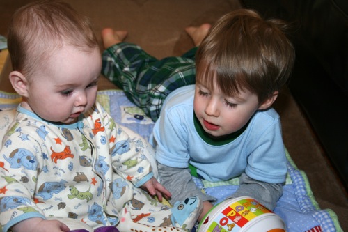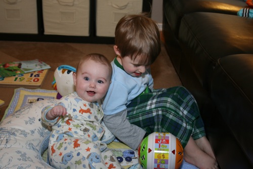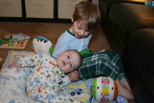 The little ones (3 and under) got to go first. Liam was a fan of this system.