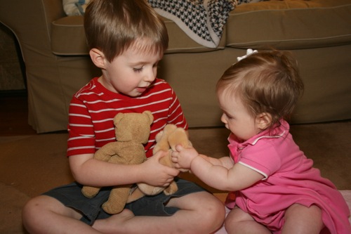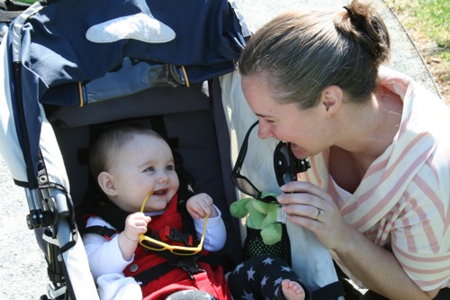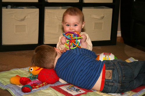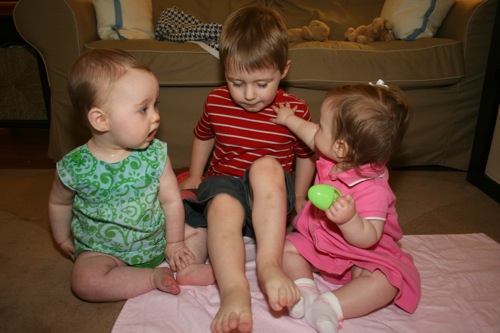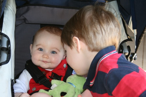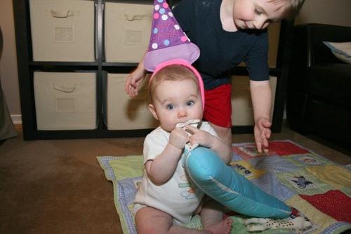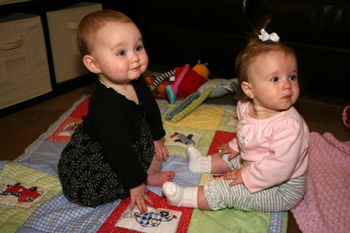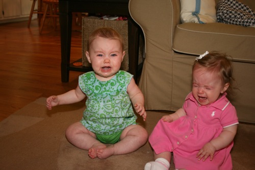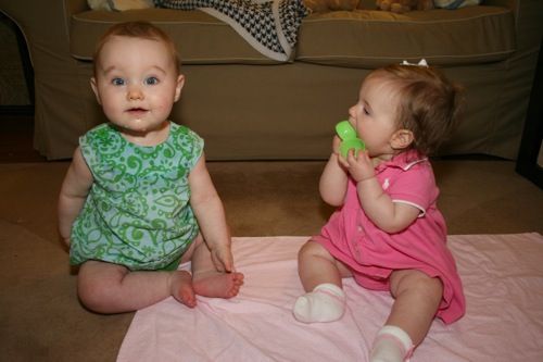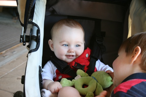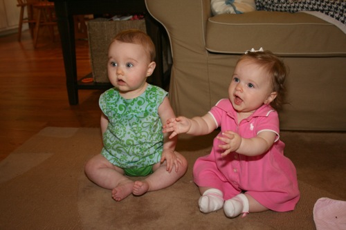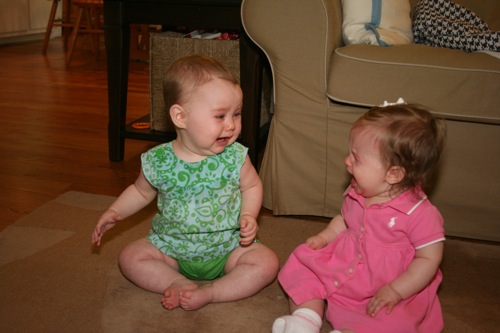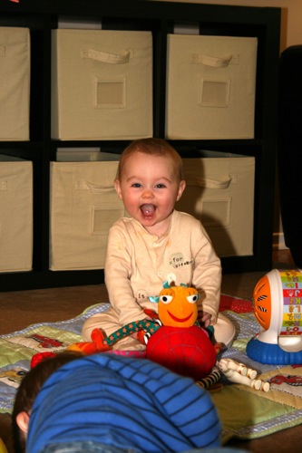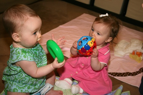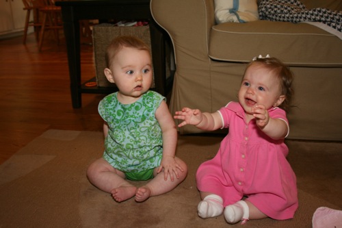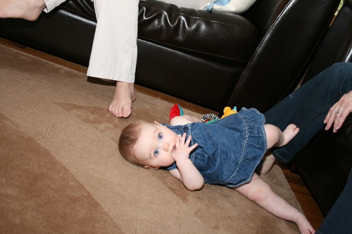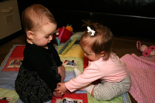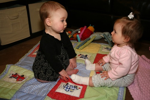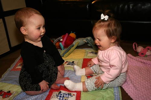There was a bit of time for playing with each other’s feet, but soon afterward Sylvie melted down one final time and they headed out. It turns out babies aren’t particularly emotionally reliable…oh well, hopefully we’ll have another chance soon!