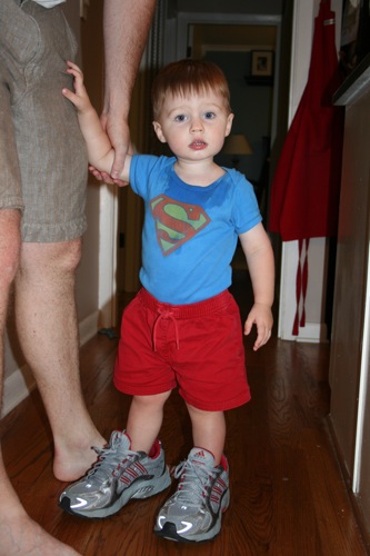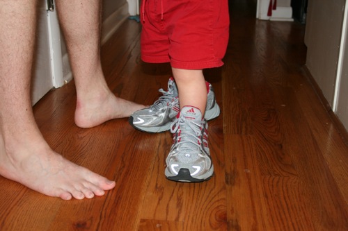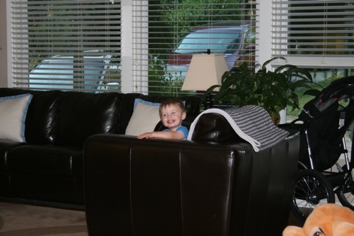 Random Small Saturday Roundup Piggybacking with Gran: New kicks: Full-on-relax mode: Little boy in a big chair: