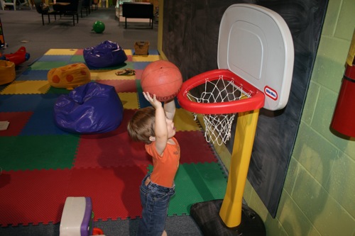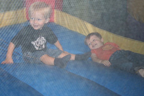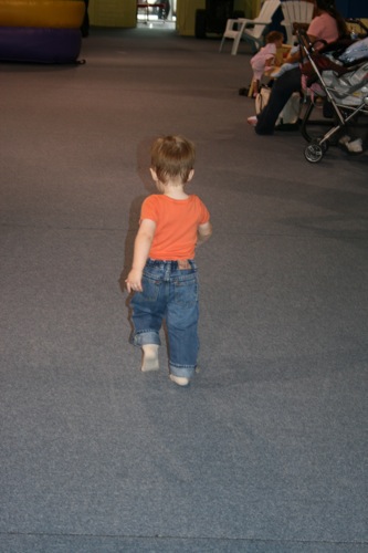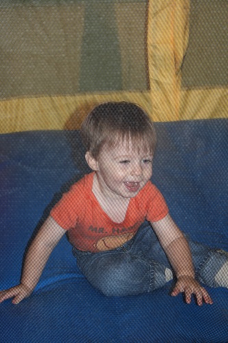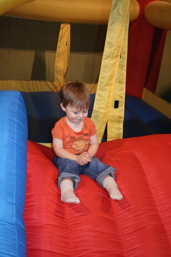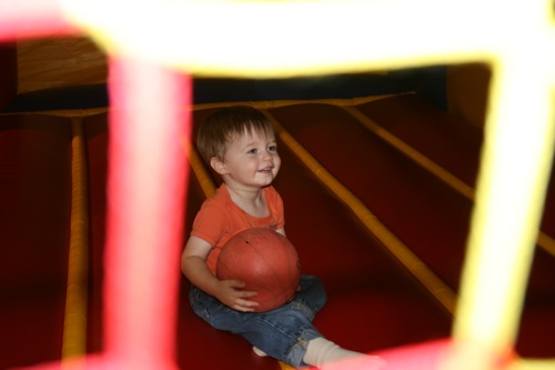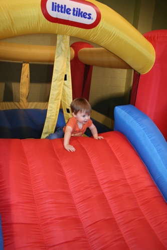 Today we met Jessica and Walker at Hippo Hopp (an indoor playground near REI). It was Liam’s first encounter with such an environment and some of his behavior was predictable (he wasn’t really too into the bouncey houses, although he did play inside them for a short periods of time) and some of his behavior had never been seen before (I put him down after we took off his shoes and he took off like a shot out of a canon — I’ve never seen the kid run so fast — and he was just running for the hey of it, not even towards anything specific). All-in-all he had a great time. I would have captured more if I hadn’t unknowingly filled most of my CF card before we got there. Here are the few shots I did get: