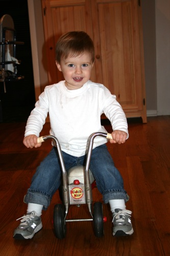 Riding his “new” scooter: