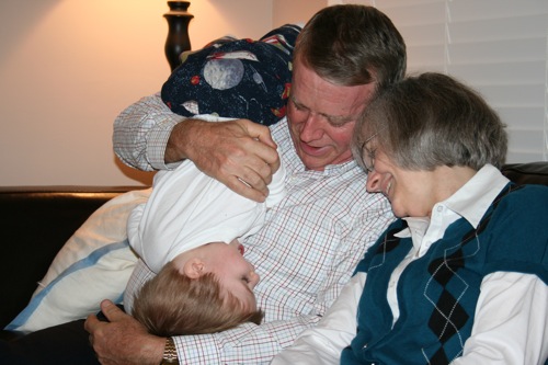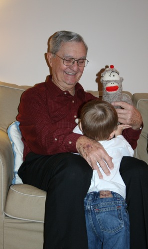 Reading with Gran, Greatdaddy, and Monkey: