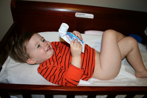Legs Despite earlier indications to the contrary, Liam appears to be in no hurry to stop having his diapers changed…