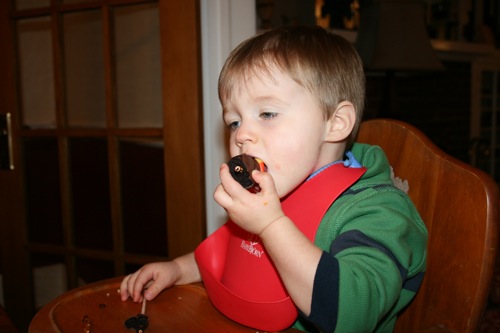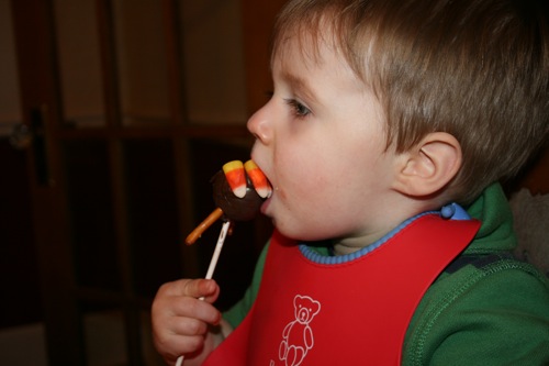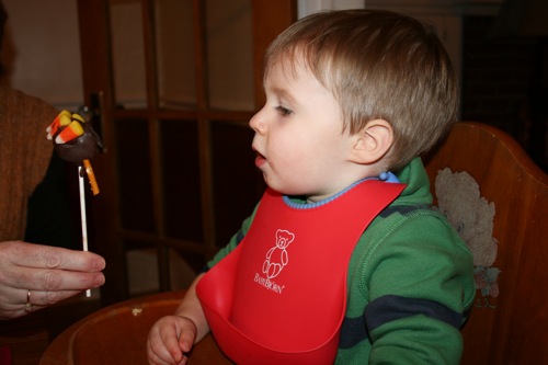 Liam’s Thanksgiving feast consisted of two courses: yeast rolls and candy corn. He cleansed his palette between the two with a smidge or two of a turkey cake pop.