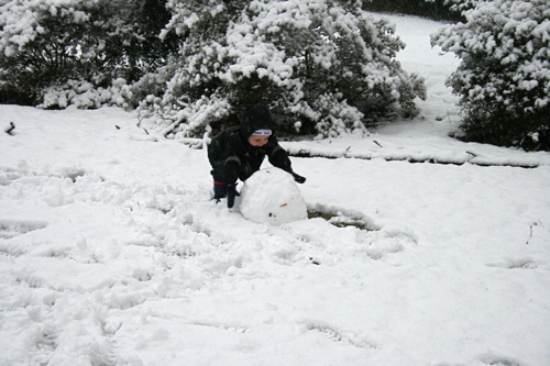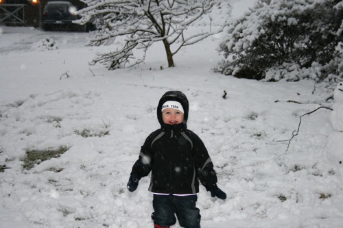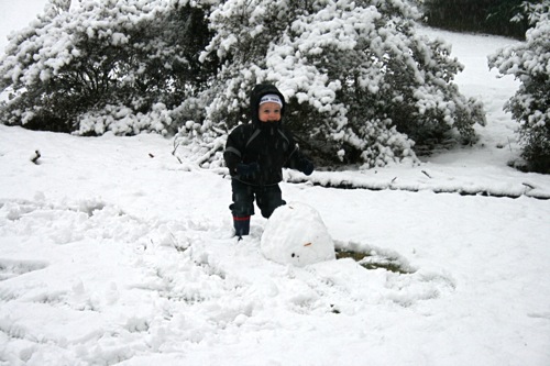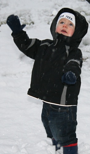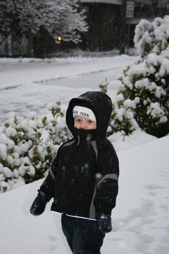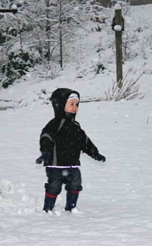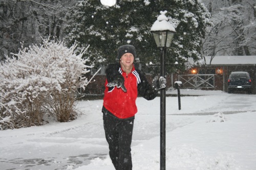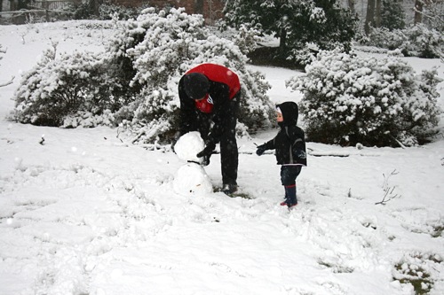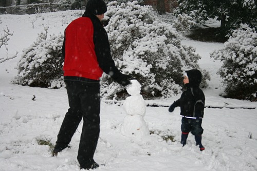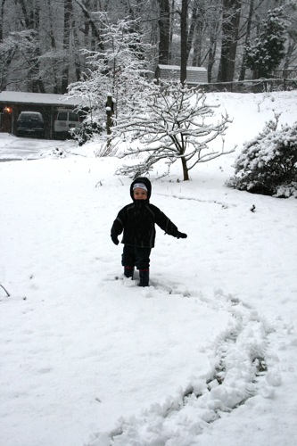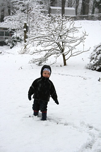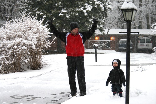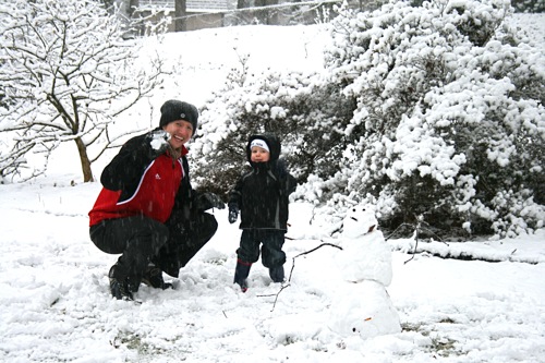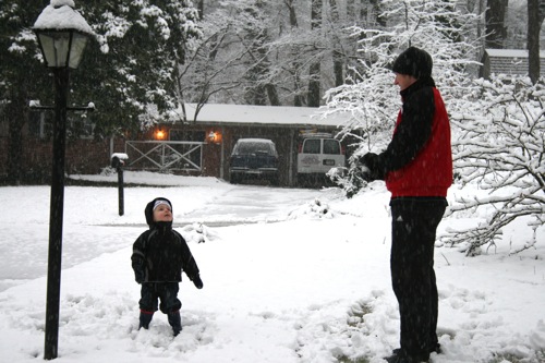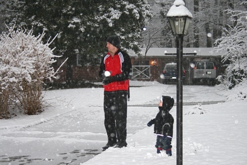 It’s just beautiful outside, the kind of snow we never get: good for snowballs and snowmen. Matt came home around early afternoon and worked from home for the rest of the day so he and Liam were able to get outside for a bit before it got dark. Liam had so much fun with the snowballs that he threw a fit when it was time to come inside, so I think that’s a pretty good barometer of how much he enjoyed it, and Matt might have had even more fun than Liam. Here are some pictures: