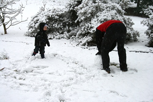 “More snowballs, Dad!”