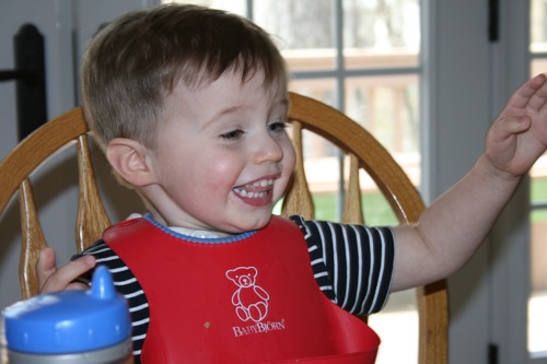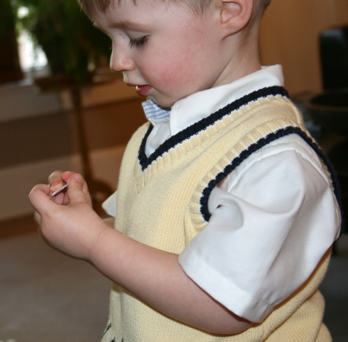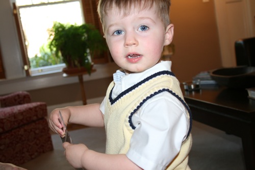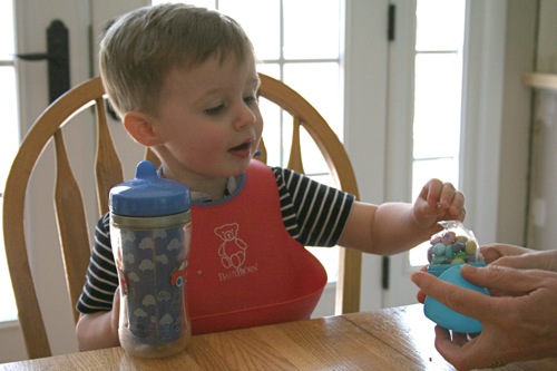 The Easter Bunny visited Liam at Gran and Granddaddy’s too. In true Liam fashion, he was finished checking out his basket as soon as he saw the first thing in the stack, which in this case were stickers. He was briefly diverted by candy, but when he learned that I really wasn’t going to let him have more than one piece, he moved back to the stickers…