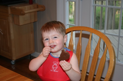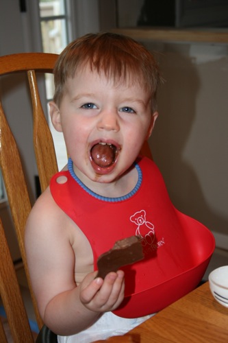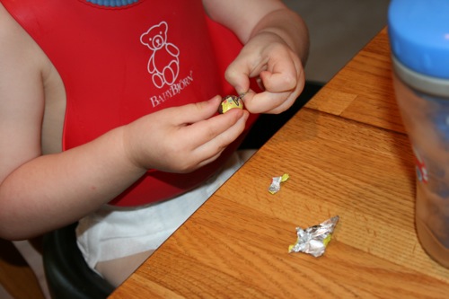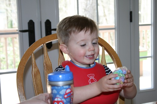 First off was a visit with Grammie and Pop yesterday during which Liam received his first Easter candy. Here are some pictures as he discovered that there were M&Ms inside that egg:
