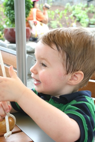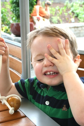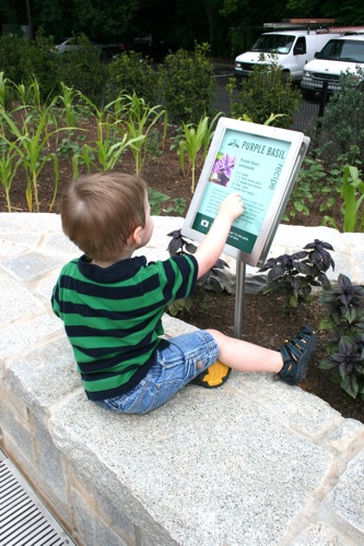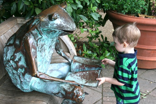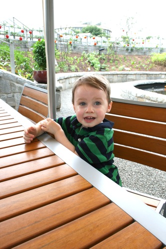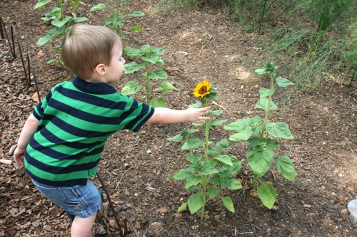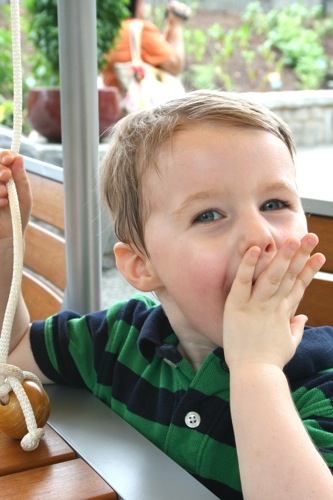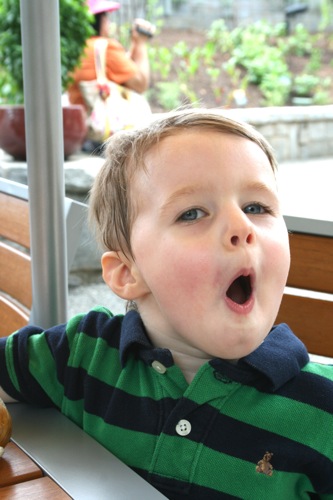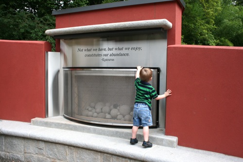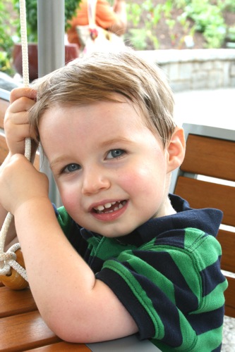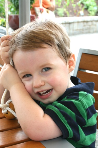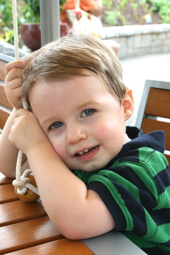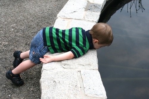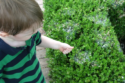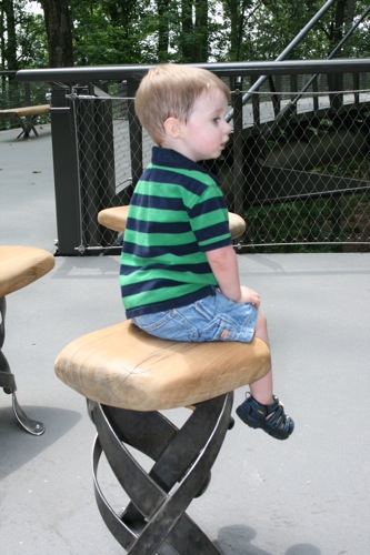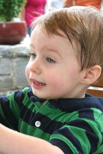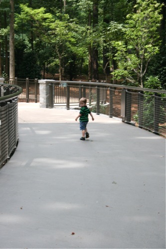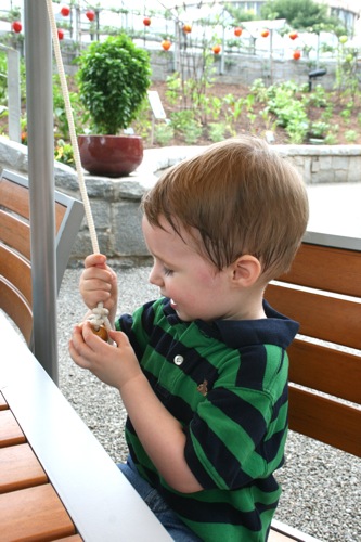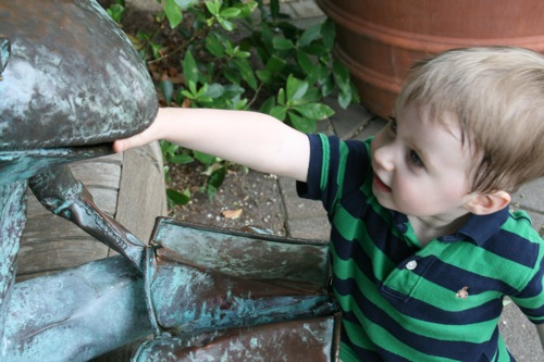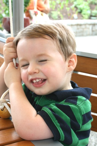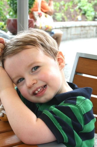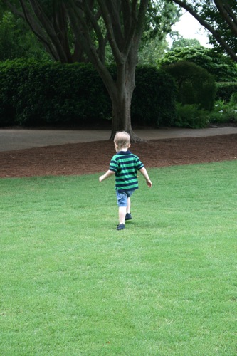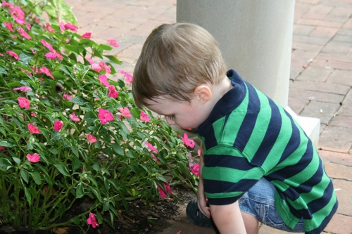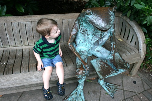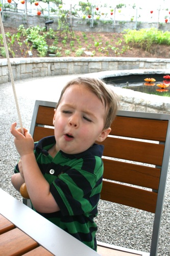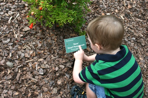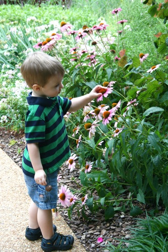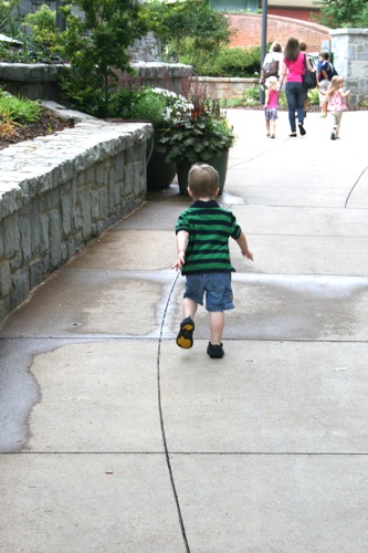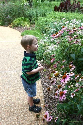 This morning we took advantage of the cool(er) temperatures (meaning that it was bearable, although still hot enough that I could have wrung my clothes out afterward) and headed to the Gardens. We spent two hours wandering according to Liam’s druthers (which surprisingly did not include any time in the flower fountain, despite my intricate preparations for just such an occasion). Here are some pictures from the morning: