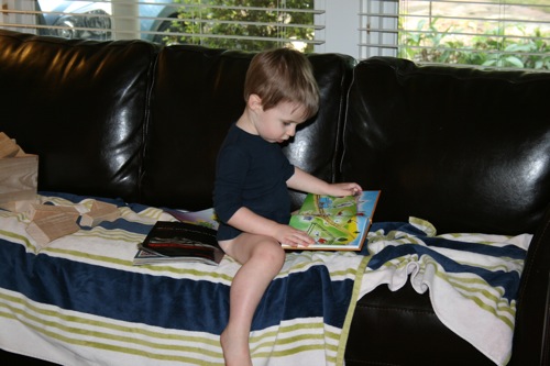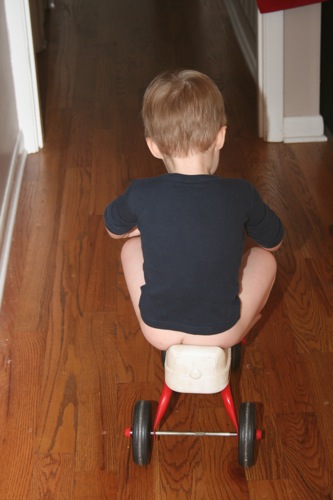 Accidents: 1.5 (1 was while he was in his chair eating dinner and didn’t realize what was happening until it was too late — thank goodness for the booster seat! The .5 was when he was playing with trains, started to go, and then stopped himself midstream to run to the potty chair and finish his business.)