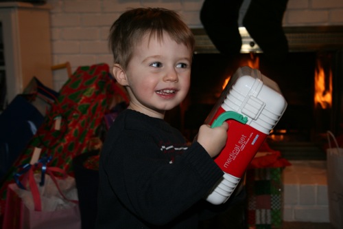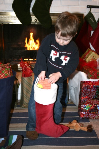 Apparently Santa left a stocking for Liam at Gran and Granddaddy’s house. On the 24th.