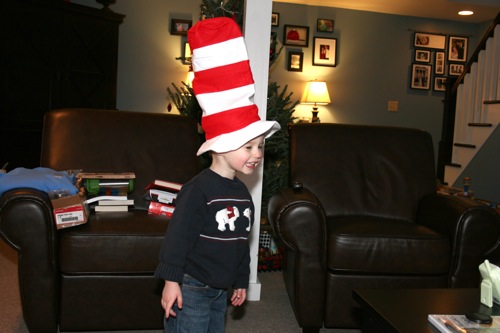 More important than breakfast? More important than stockings? More important than eyes that are completely open? That’s right: The Cat In The Hat.