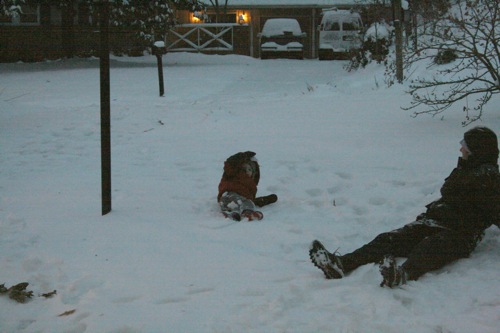 Monkey see, monkey snow angel: