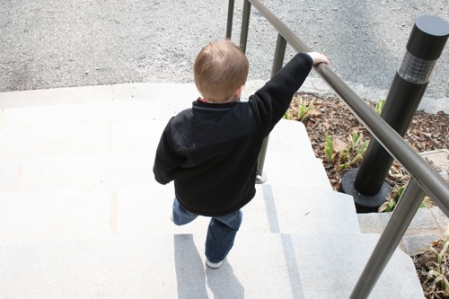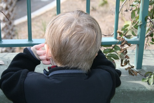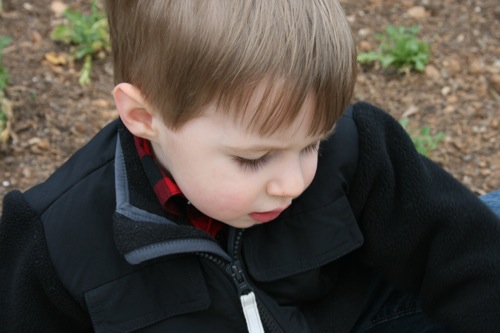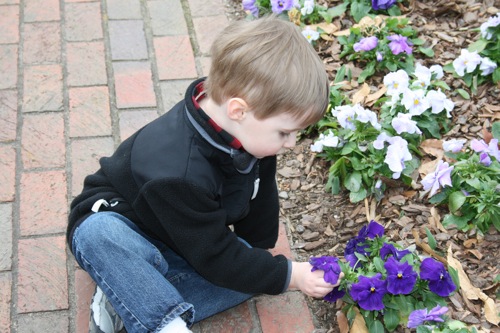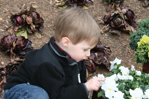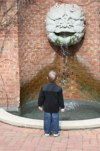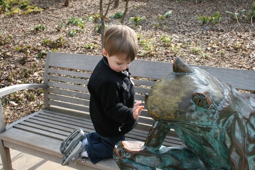 A couple of weeks ago Liam and I took a trip to the Gardens for some one-on-one time. Here he is greeting his froggie friend: