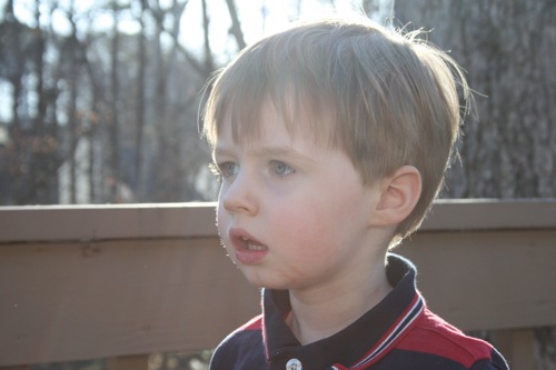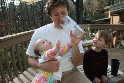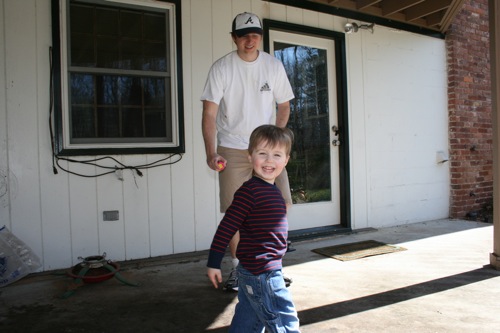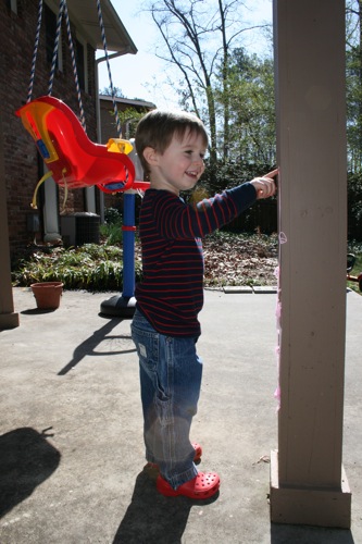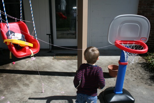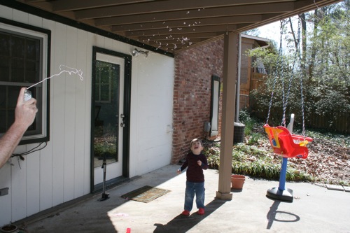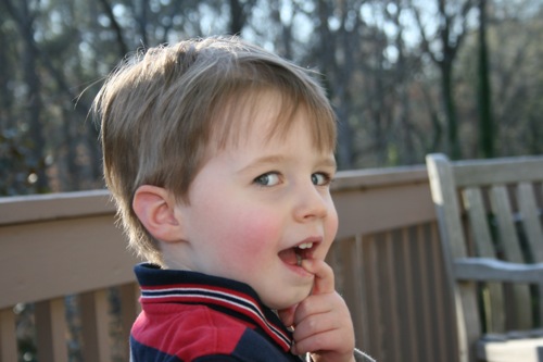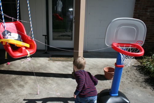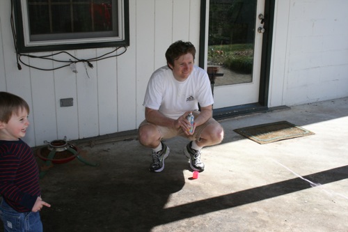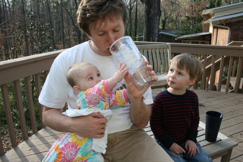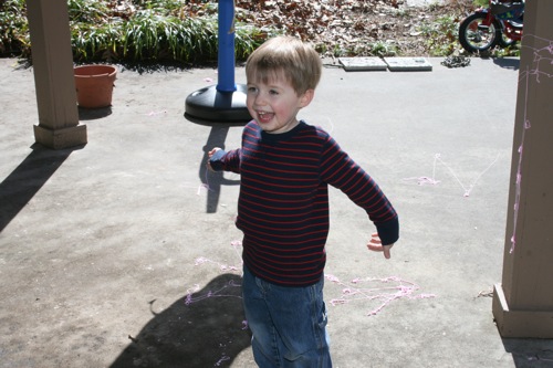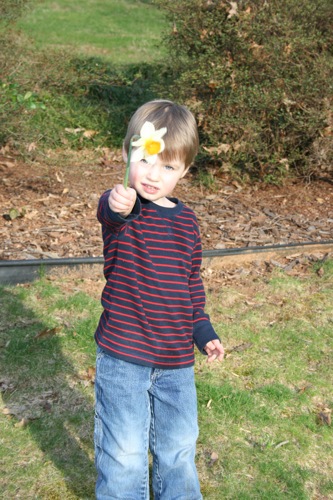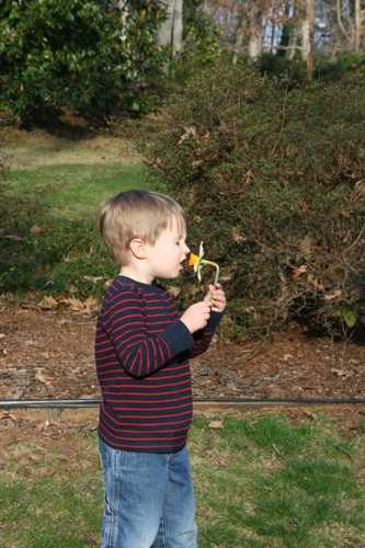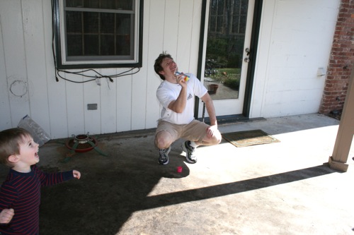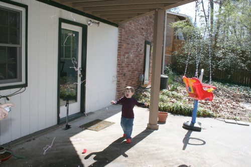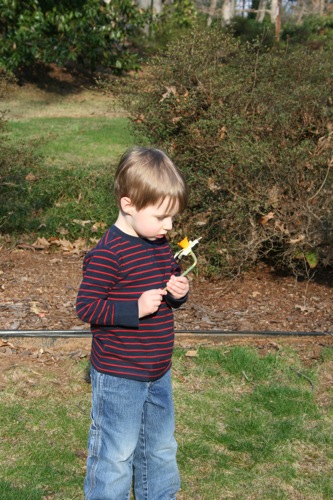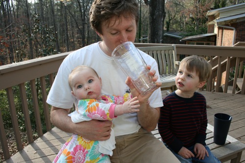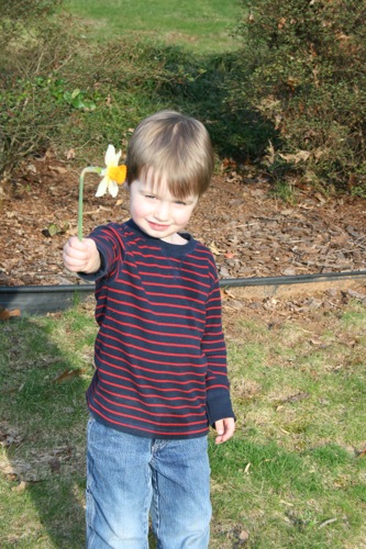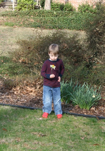 As anyone who lives in Atlanta knows, the past weekend was absolutely glorious and we Connollys took full advantage of the weather.  We all spent the majority of our waking hours outside and I even got the chance to sit out on the deck, stretched out in a chair with a big beverage in hand, and read for an hour and a half (which is absolutely unheard of these days).  It’s been heavenly.  There has been sand play, soccer, basketball, tricycling, hide and seek, flower picking and even a little silly string thrown in for good measure.  Of course this means I took 500 pictures over the course of the weekend (naturally).  Pour a cup of coffee and settle in cause this is gonna take a while…