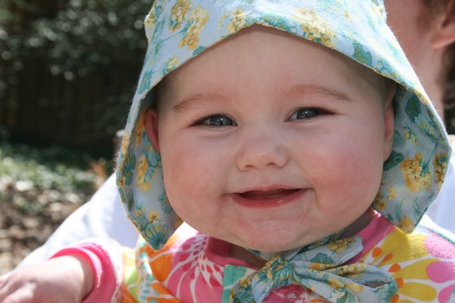 Our little ladybug in her Amish sunhat.  There aren’t words to adequately describe or pictures that can adequately capture the adorableness here:
