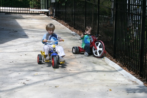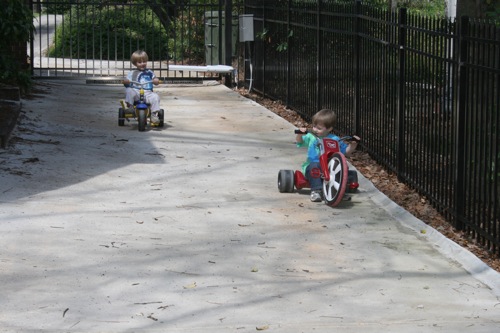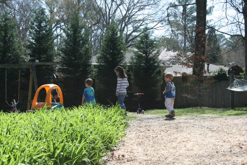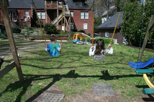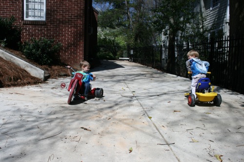 It was another gorgeous Atlanta day today and as luck would have it, we’d planned a playdate with Walker and Jessica so we schlepped over to Morningside with what felt like all of Paige’s worldly possessions so she could nap while Liam and Walker played the afternoon away. It was an absolutely wonderful afternoon and Liam spent the entire ride home (with a brief break to talk about trains as we passed the tracks) talking about how he wants to go back to Walker’s house. Right. Now.