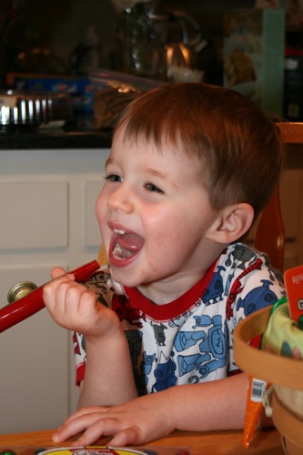 The little ones (3 and under) got to go first. Liam was a fan of this system.