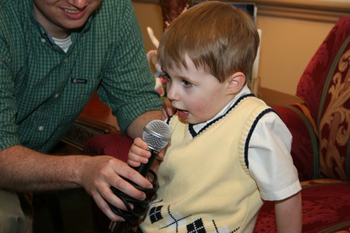 Liam takes a (very) short break from bouncing off the walls to say hi to Pitts: