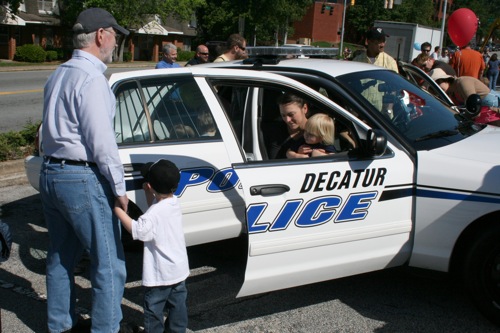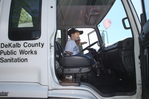 I’m pretty sure there’s a metaphor in here…something about sitting in a Dekalb County truck with a City of Decatur balloon floating by, just out of reach…or maybe it’s just a little boy enjoying his turn in a big truck.