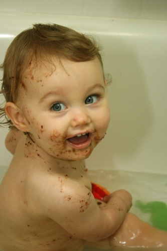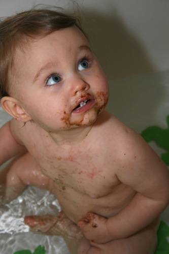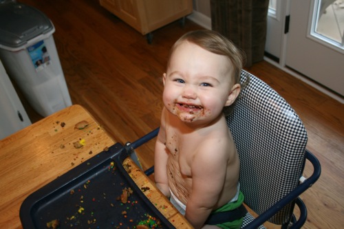 And here’s where I once again dissolve into a heap of inability to edit. Â Picture after picture after picture of Paige covered in cake…