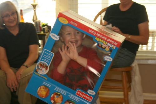 Liam was very excited to get it outside to its proper place: