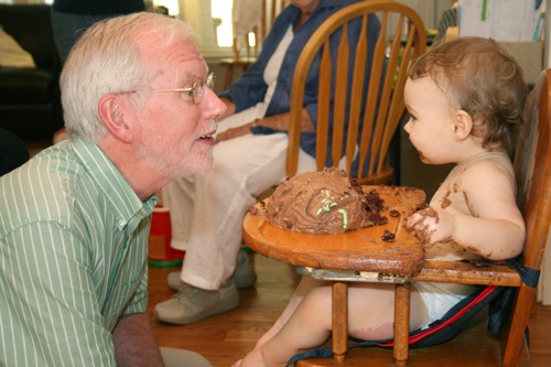 Blowing out the candle (with a little help from Liam and Daddy):