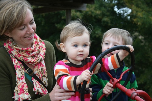 We started out at the Koulouris’s house since their street has lots of kids and much less traffic than ours. Â Paige and James spent most of the time riding in the wagon together while trading candy with each other (or putting it in Liam’s bag: a major big brother benefit). Â They were adorable!