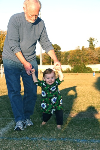 Paige takes Pop on a walk: