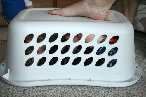 Boy under a basket: