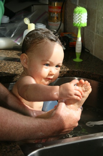 Baby Girl loves a bath, no matter where it takes place: