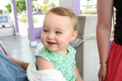We rounded out the week of firsts by taking Paige to the park and putting her in the swing that Liam loved so much at her age.  For the first time.  At almost a year old.  Because I’m trying to see how terrible I can possibly be at this whole mothering thing.  Ah well, better late than never, no?  She thoroughly enjoyed herself.  Here are some pictures I snapped with my phone.